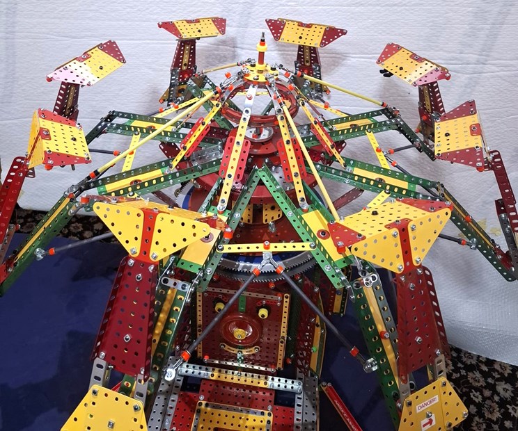 Once this new diameter potential of the ride spin was realised, I had to then make all the alterations to the structure around it to accommodate its new rotating footprint. Similarly the canopy itself needed further modifications before I could achieve the precise position to mount it onto its supporting tower, from where it was a real moment when it finally showed itself rotating unimpeded and freely.